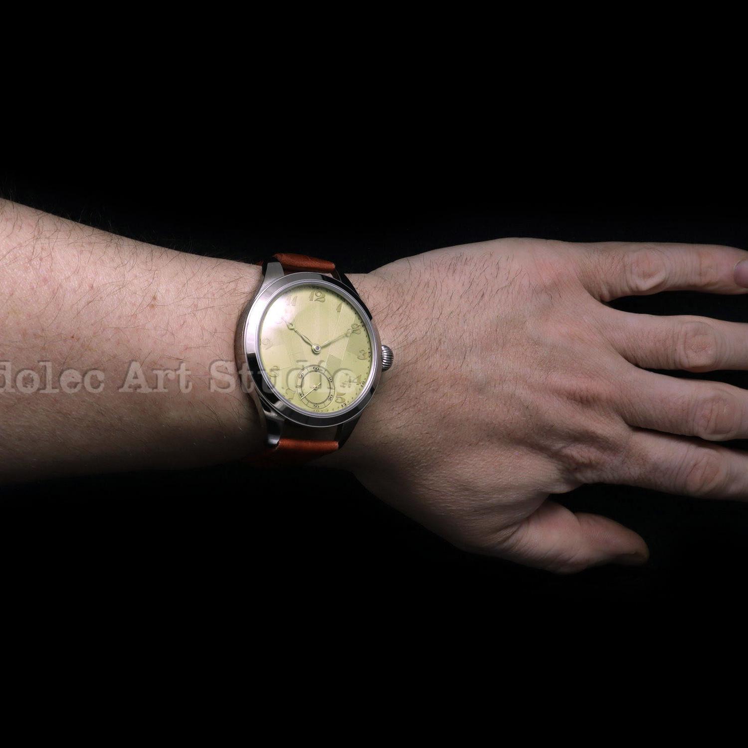 Find vintage watch for the collector or the admirer from trusted seller, which offers this CUSTOMIZED WATCH that features with ORIGINAL enameled DIAL, STAINLESS STEEL CASE and original pocket watch MECHANISM with BLUE STEEL SCREWS and BI-METALLIC MICROMETER REGULATOR. Indeed, it was made by WANDOLEC ART STUDIO based on SWISS movement.