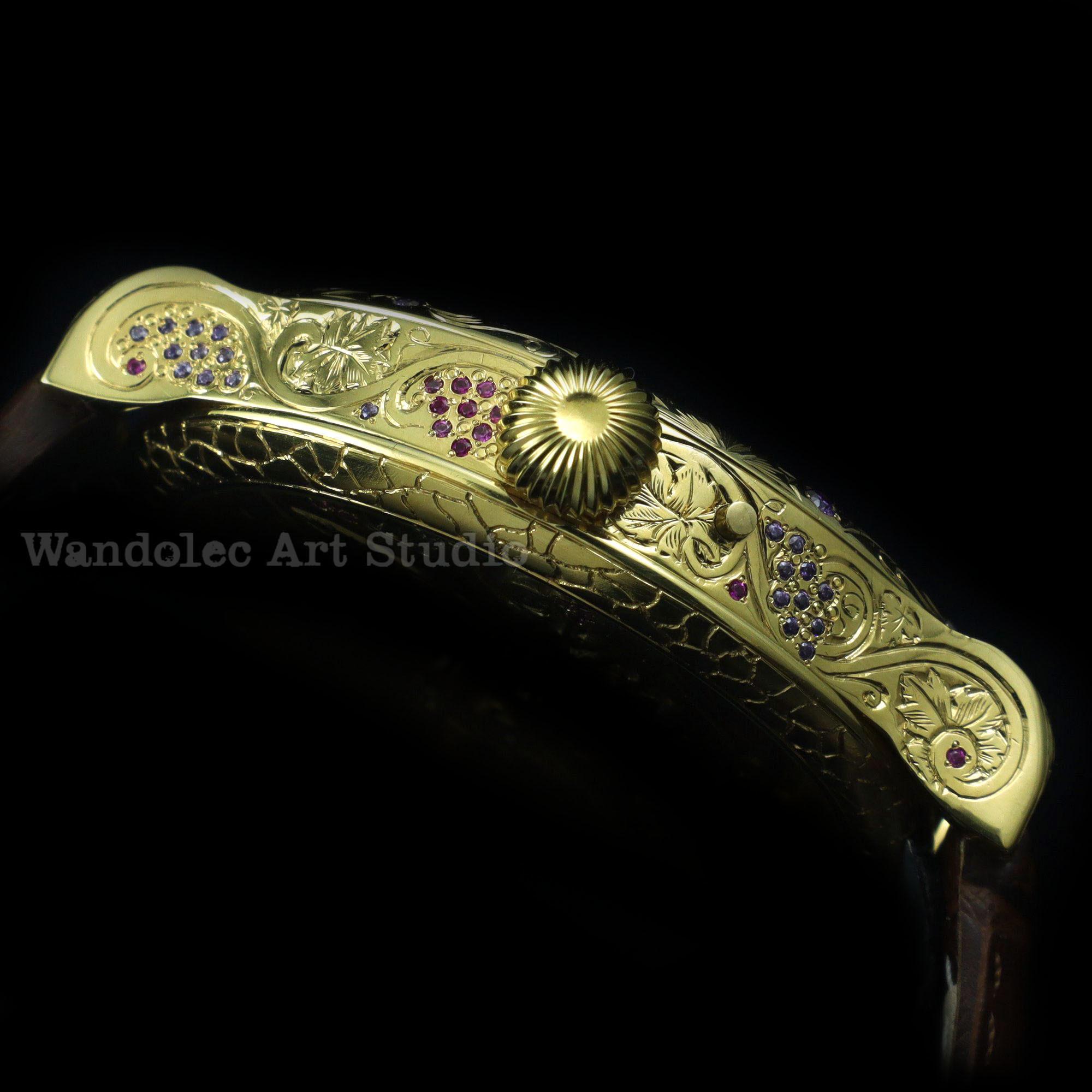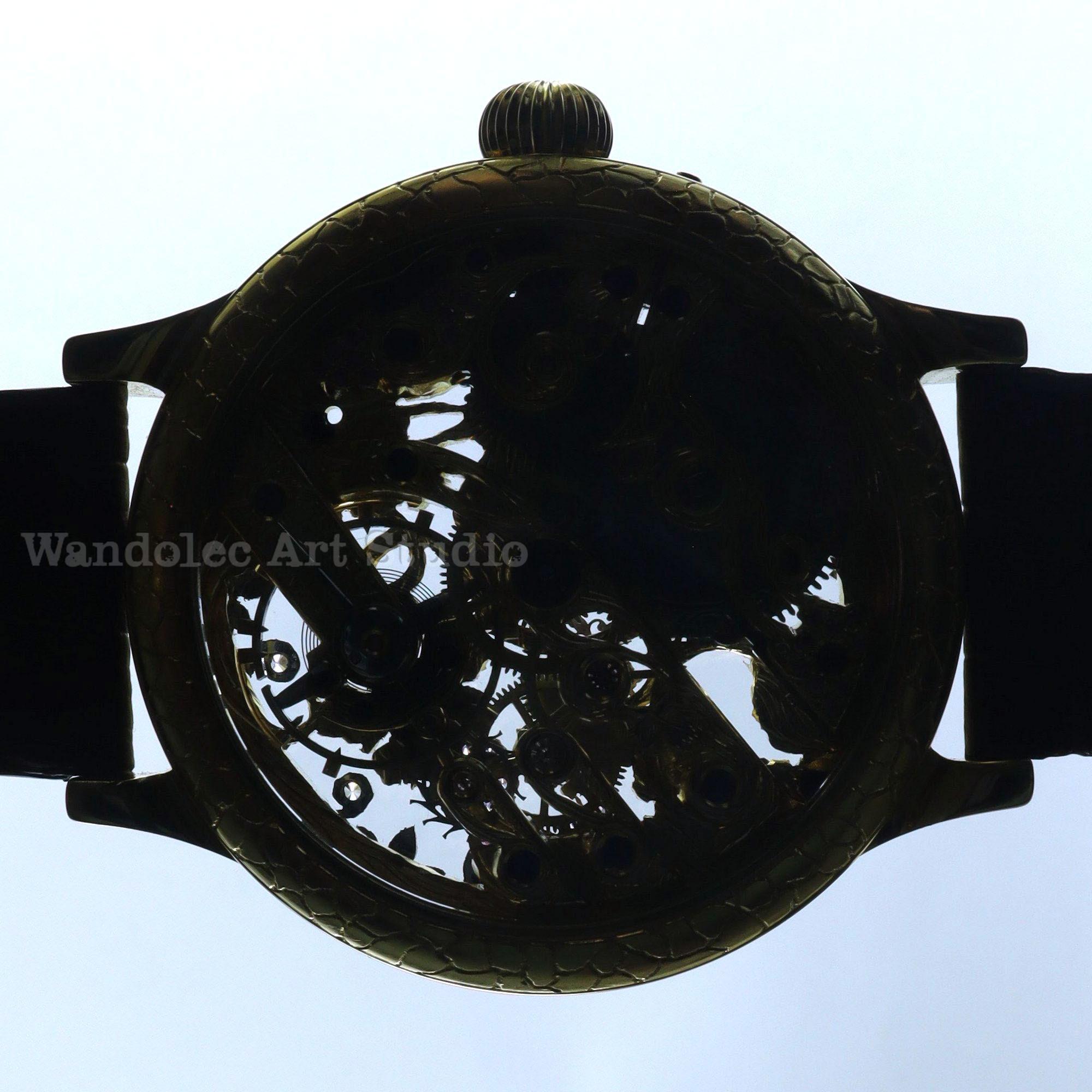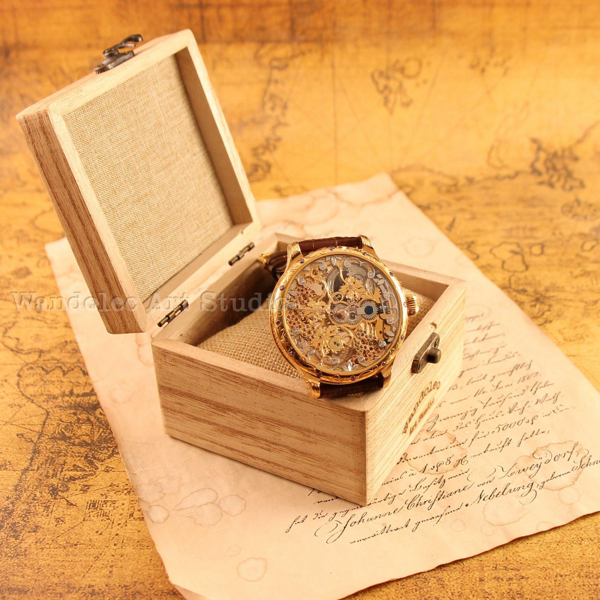 Exceptional watchmaking and timeless elegance for this beautiful amazing large engraved dress a CUSTOMIZED WATCH that decorated with the HIGHEST QUALITY GRAPES ENGRAVING and COLOUR STONES was made by THE WANDOLEC ART STUDIO based on famous SWISS movement from LeCoultre & Co.