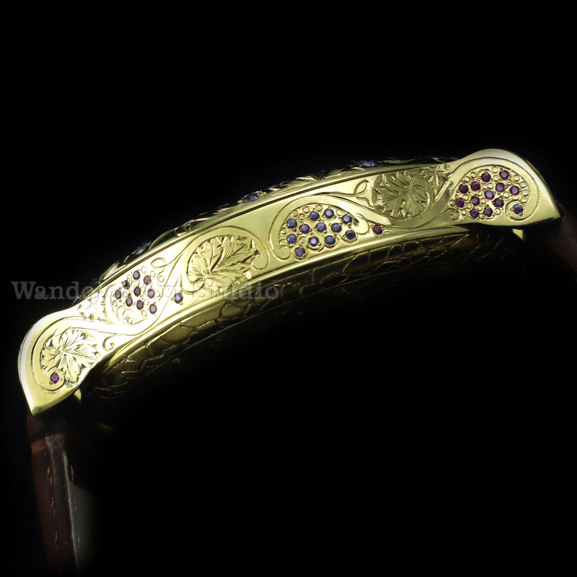Each part of this excellent watch are decorated HIGH QUALITY GRAPES ENGRAVING with the COLOUR STONES and are made in the same style. This is look very beautiful.